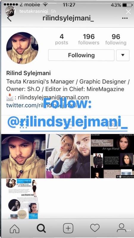 Aktorja është mjaftë e pranishme edhe në rrjete sociale. E hapsirat e saj virtuale me sa duket menaxhohen nga Rilind Sylejmani. Profili i këtij të fundit shpërndahet shpesh këto ditë në Insta Storyn e Teutës.