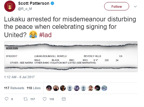 Sulmuesi më i ri i “Djajve të Kuq”, Romelu Lukaku, që u transferua në “Old Trafford” për 85 milionë euro, është arrestuar në Beverley Hills nga policia e Los Angeles për shkak të prishjes së qetësisë, shkruan 90min.com, transmeton Gazeta Express.